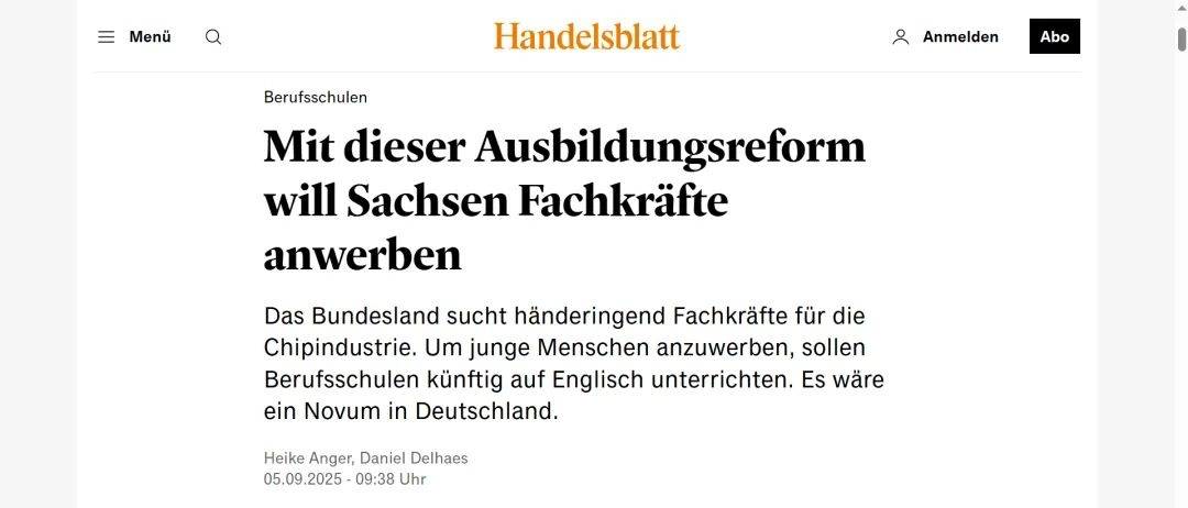 另一端,则是萨克森州大刀阔斧的职业教育改革——全国首个以英语授课的双元制职业教育项目,旨在为德累斯顿的芯片产业注入全球人才。