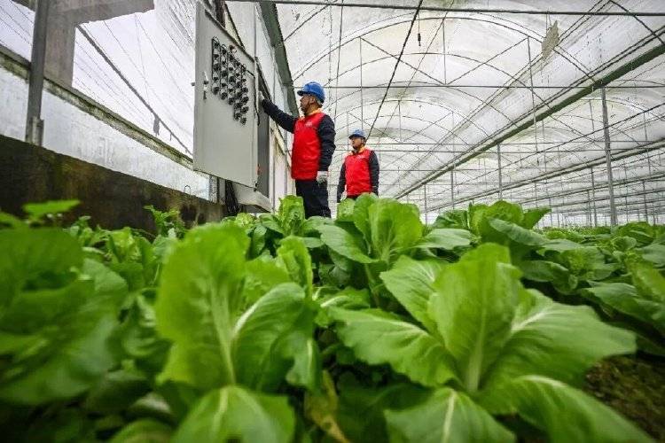 2月5日,重庆璧山区璧北蔬菜基地,供电工作人员在蔬菜大棚内检查用电设备。记者 龙帆 摄/视觉重庆