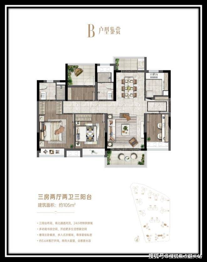此户型在空间尺度上更为舒适,为家庭提供更充裕的生活空间。客厅面宽较大,连接景观阳台,视野开阔,让室内空间更加通透。餐厅与厨房紧密相连,方便用餐,厨房操作空间宽敞,可进行多样化烹饪。主卧套房设计,配备独立卫生间和飘窗,提升居住私密性与品质感,主人可尽情享受专属舒适空间。次卧和儿童房布局合理,空间适宜,可根据家庭成员喜好进行个性化布置。此外,该户型注重细节设计,如各个房间的窗户位置和大小,都经过精心考量,保证采光和通风效果最佳,让居住者能充分享受阳光与清新空气。